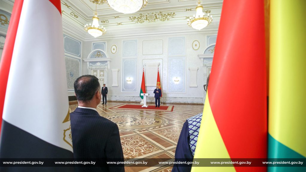 Обращаясь к зарубежным послам, Глава государства сказал: «Мы открыты для ваших инициатив по развитию двусторонних отношений, будь то торговля, инвестиции, наука, культура, образование, спорт или народная дипломатия. Можете рассчитывать на поддержку на всех уровнях. Я приглашаю вас более плотно познакомиться не только с нашей культурой, но и с нашими возможностями. Каждой из ваших стран у нас есть что предложить. Двери для вас в Беларуси открыты. Желаю вам успешной и плодотворной работы на вашем ответственном посту в Беларуси».