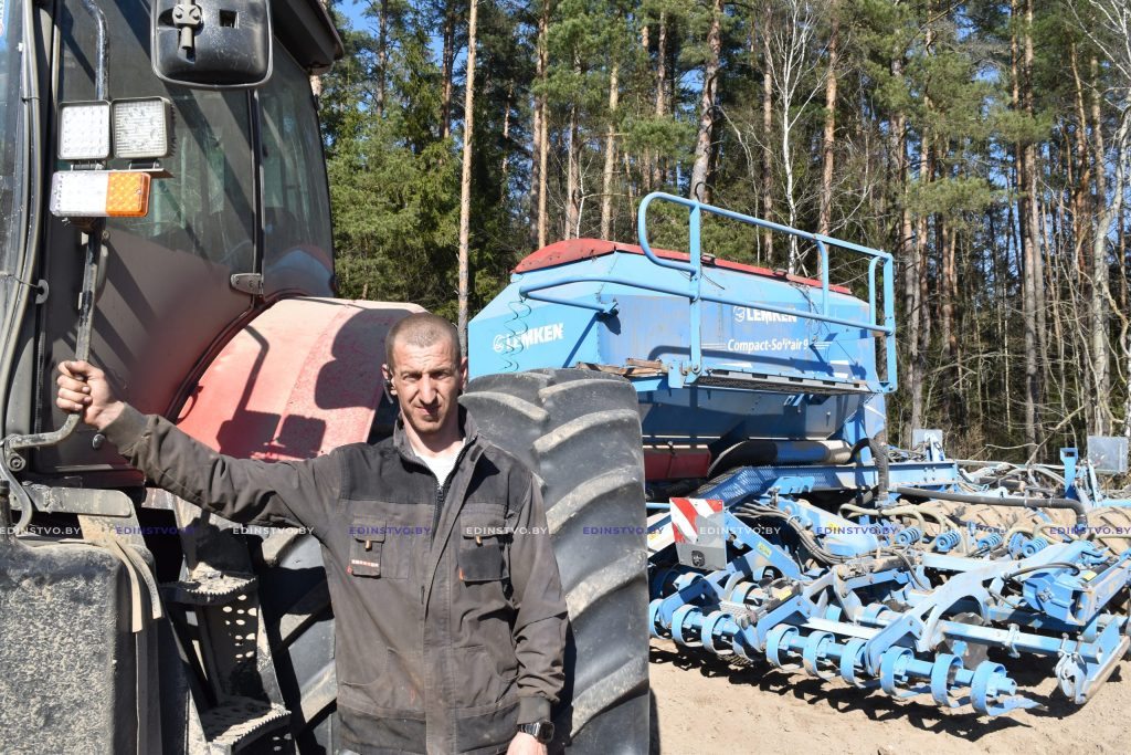 — На этом тракторе МТЗ-3022 тружусь второй год. Раньше работал на другой технике: вносил химию на поля, культивировал почву, убирал зерновые, теперь вот сею. В день с шестиметровой сеялкой «Лемкен» в среднем выходит около 40 га, — уточнил Игорь Игоревич. — На этом поле в 109 га отсеялся за три дня. Живу в Пересадах, хотя родом из Жодино. Пошел, можно сказать, по стопам дедушки, который был трактористом и жил в Воложинском районе. В семье один тружусь в сельском хозяйстве. Супруга работает в медицине, а старший сын — в СЗАО «БЕЛДЖИ», младший — еще школьник.