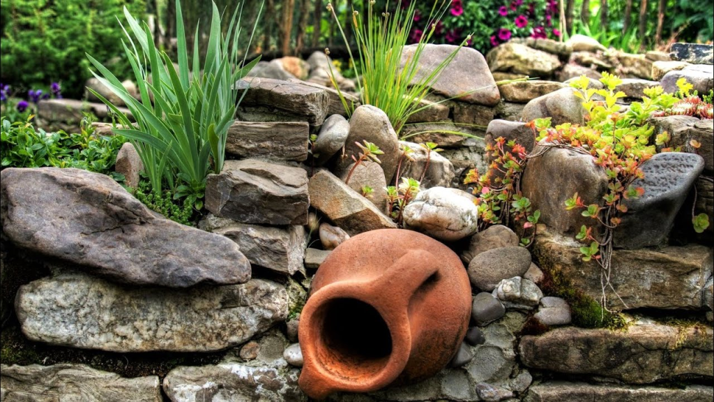 Из камня можно выложить невысокий бордюр, создать сухой ручей или оформить пространство вокруг скамейки. Такие решения не требуют сложных работ, но придают участку завершенность и ощущение продуманного дизайна.