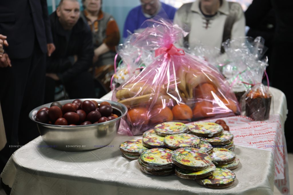 Они передали традиционные пасхальные угощения и средства личной гигиены, пообщались с пациентами и поздравили их со светлым праздником Пасхи.