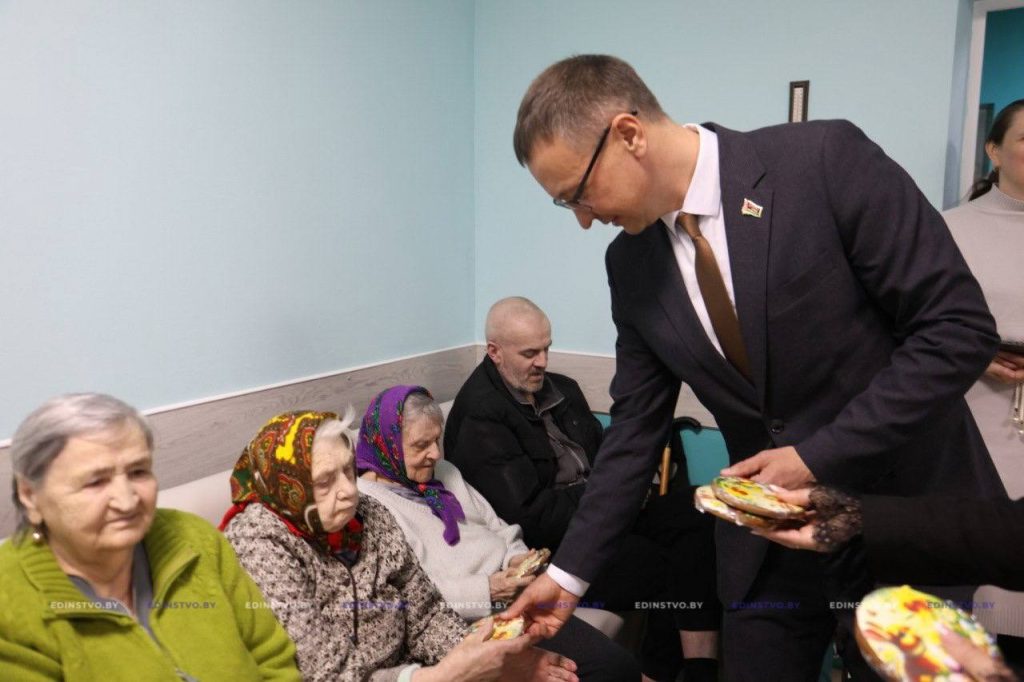 – Уважаемые проживающие, от имени Борисовского районного исполнительного комитета примите искренние поздравления со светлым праздником Пасхи. Этот символичный день напоминает нам о добре, любви и возрождении, укрепляет веру и надежду. От всей души желаю вам крепкого здоровья, бодрости духа и душевного тепла. Отдельные слова благодарности – сотрудникам отделения за поддержку, помощь и заботу, которыми они ежедневно окружают вас. Пусть в ваших домах всегда царят мир, радость и благополучие. С праздником!