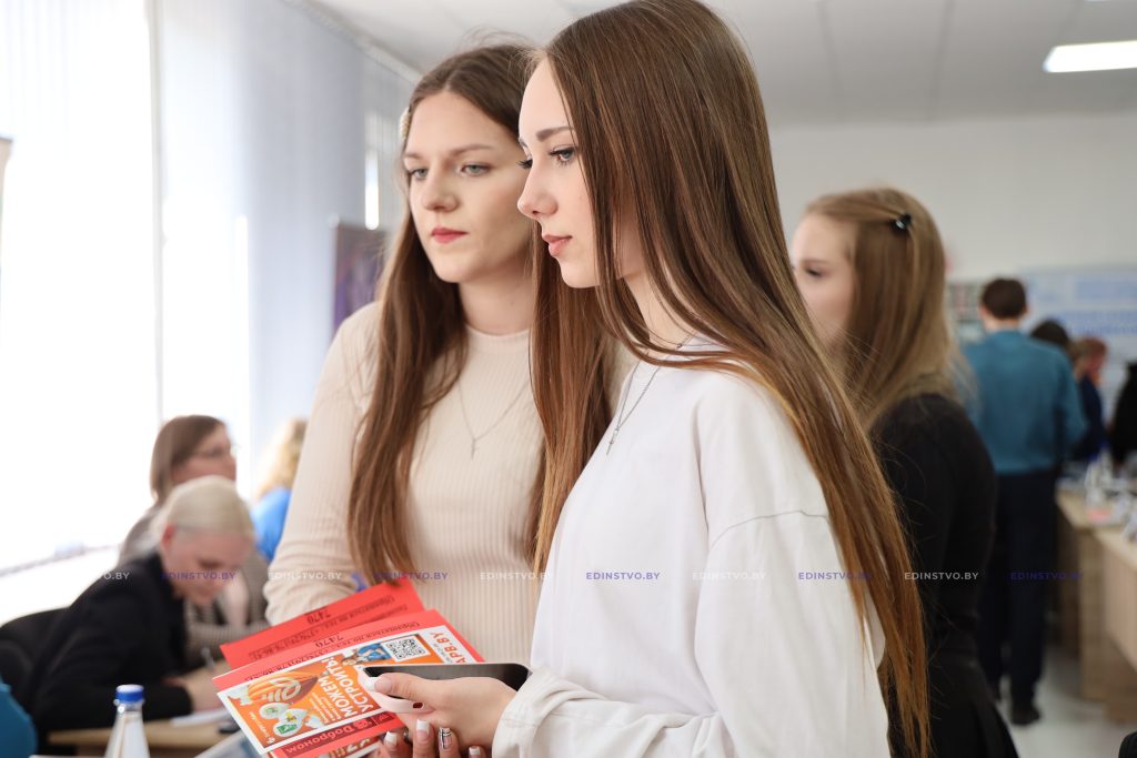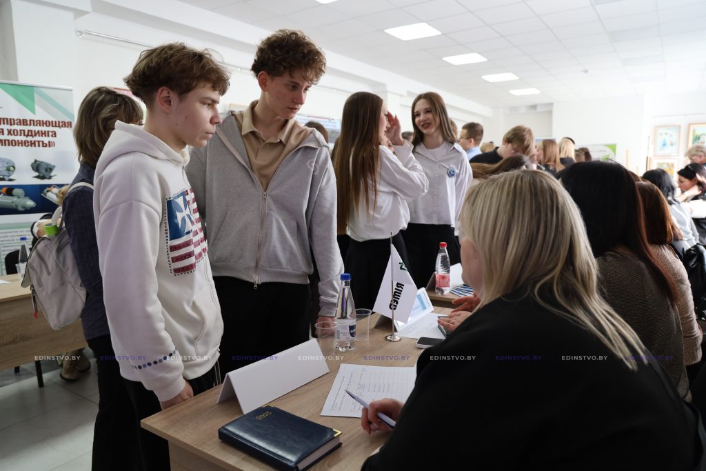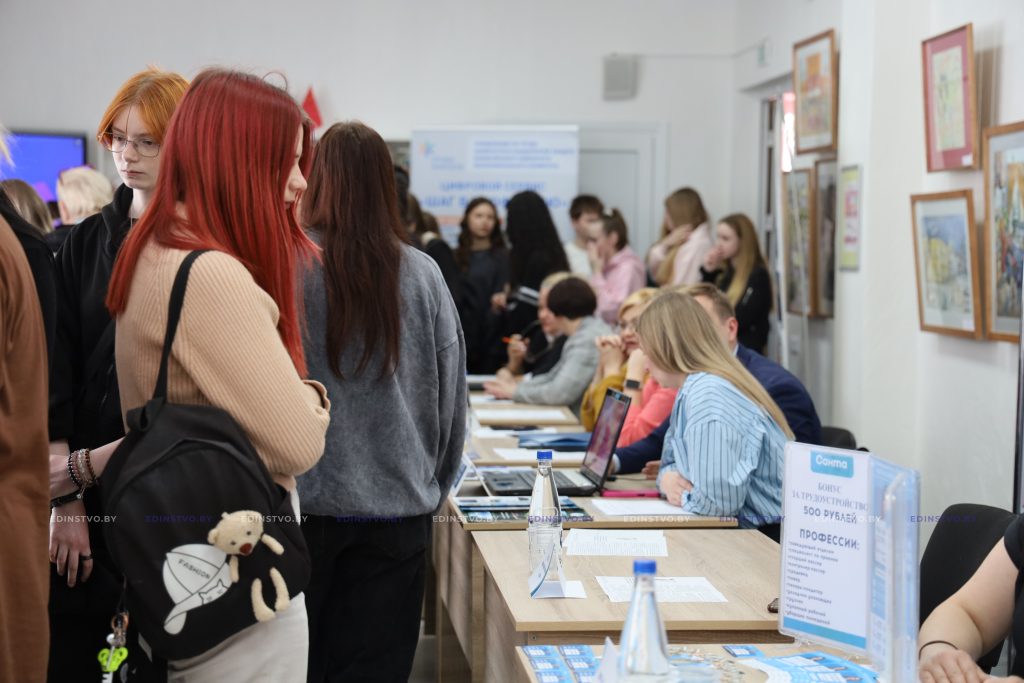 На входе в зал размещены стенды с QR-кодом, ведущим на сайт, где ребята могут пройти профориентационное тестирование и определить, какая профессия им подходит. У молодежи есть уникальная возможность пообщаться с нанимателями – они подробно расскажут о своей сфере, условиях работы и помогут с выбором. Некоторые предприятия подготовили презентации, чтобы наглядно показать возможности трудоустройства.