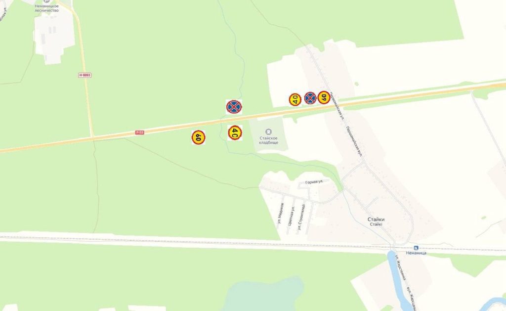 — на автомобильной дороге Р-53 «Слобода-Новосады» вблизи Кальварийского и Стайского кладбищ