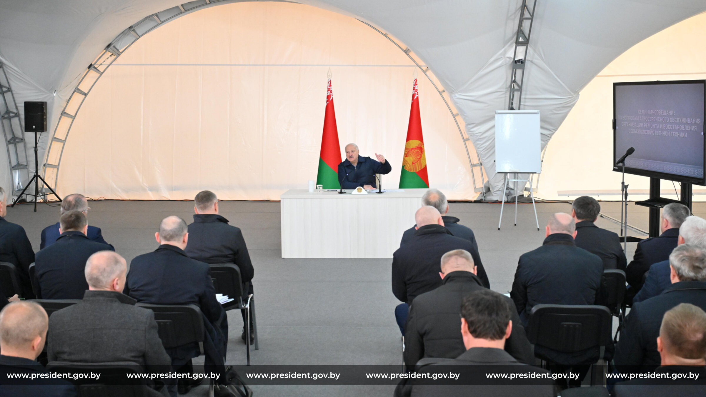После ознакомления с работой «Мозырьтехсервиса» Глава государства собрал семинар-совещание по теме работы агросервисов и подготовки техники к полевым работам.