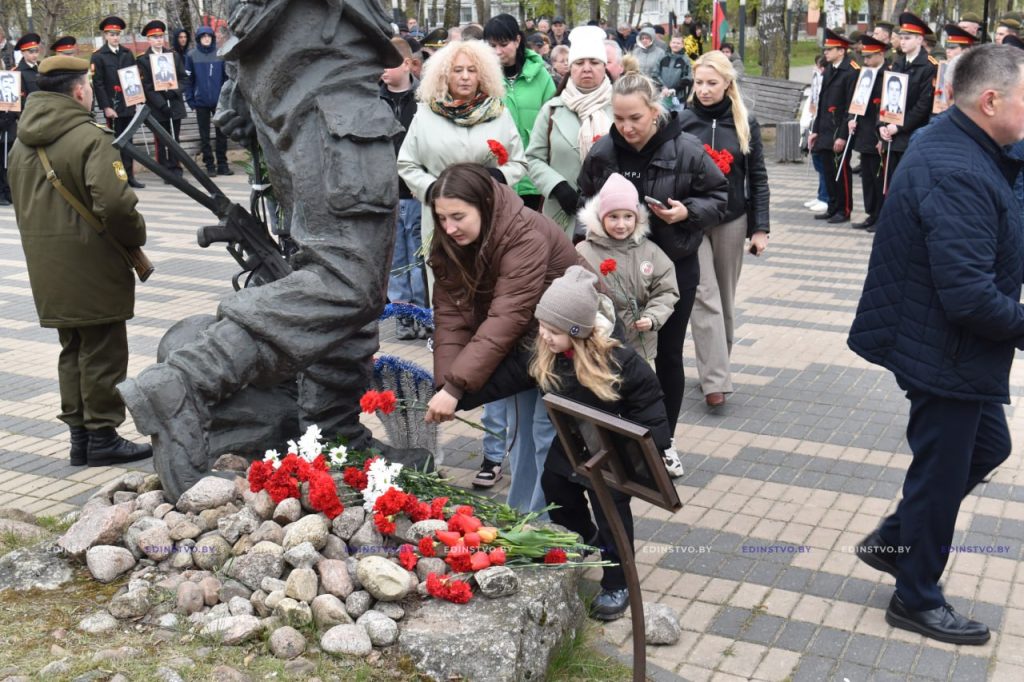 — Воины-интернационалисты — это люди, для которых честь, Родина, долг, воинское братство — не пустые слова, — заметил, открывая митинг, заместитель председателя Борисовского райисполкома Егор Мандрик. — Прошло уже не одно десятилетие с тех событий, оставивших трагический след во многих семьях. И казалось бы, все осталось примерно как прежде. Сейчас у нас тоже идет весенний призыв. На этой неделе мы отправили борисовских ребят в элитные войска. Точно также, как и много лет назад, у ворот военкомата их провожали родные, матери, друзья. Но есть одна большая разница: благодаря мудрой политике Главы нашего государства, они вернутся домой, несмотря на полыхающие во всем мире военные конфликты, в отличие от ребят, смотрящих на нас сейчас с портретов, которые держат в руках кадеты. Мы должны беречь самое ценное и хрупкое, что у нас есть, — это мир и человеческая жизнь.