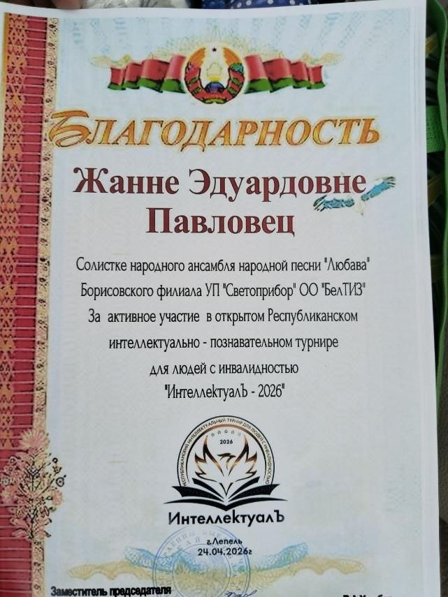 Праздник ума, эрудиции и смекалки — первый в стране открытый республиканский интеллектуально-познавательный турнир для людей с инвалидностью «ИнтеллектуалЪ-2026» собрал в Лепеле десять команд из разных регионов Беларуси. Почти три часа мозгового штурма пролетели для участников незаметно. Все команды продемонстрировали невероятную силу духа, сплоченность и знания в различных сферах. В напряженной борьбе кубок турнира достался команде «Борисов», представляющей Борисовский филиал УП «Светоприбор» ОО «БелТИЗ».