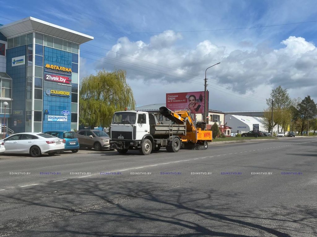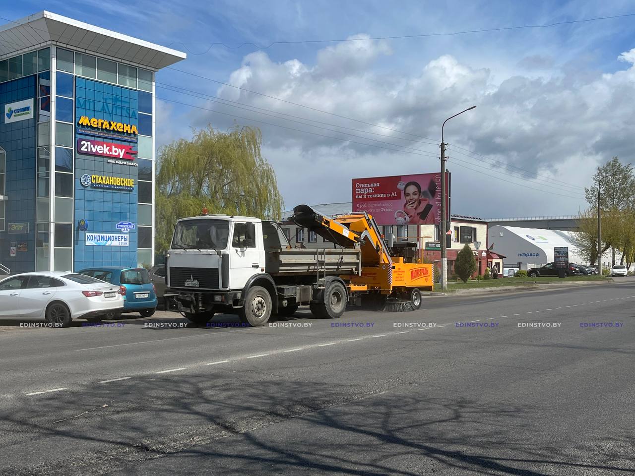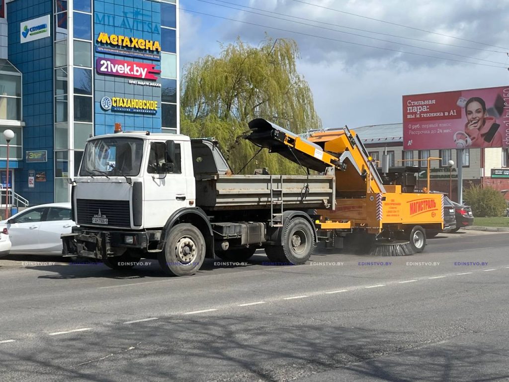 Сегодня на улицы Борисова вышла новая подметально-уборочная техника –прицепная машина ПУМ-001 «Магистраль». В работе она была замечена на улице Строителей.