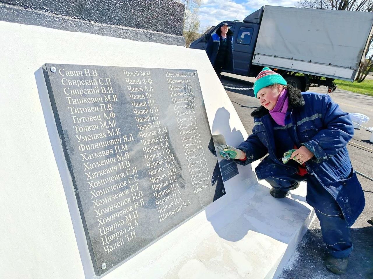 Работники предприятия установили новую мемориальную плиту, обновили покраску памятника и ограждения, провели уборку прилегающей территории.